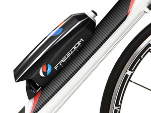 The Freedom Design solution is characterised by the use of a novel internal fastening technique of the water bottle to the holder. Simple and brilliant. The shape of the bottle is no longer mandated to be cylindrical. Now bottle and bicycle manufacturers can customise the bottle design in different ways to improve the aesthetic and aerodynamic attributes of the bike. Branding on the bottle is no longer destroyed as the bottle is used. Bottles retain their finish and markings longer and improve the durability of the product. The ease of use of the system has been dramatically improved. The bottle only needs 25mm of parallel travel before it can be moved laterally and removed from the bike. Less precision is required in replacing the bottle and this makes the task easier and quicker. The design of the bottle and holder provides a means for securely locking the bottle in place and prevents rattling and vibration.